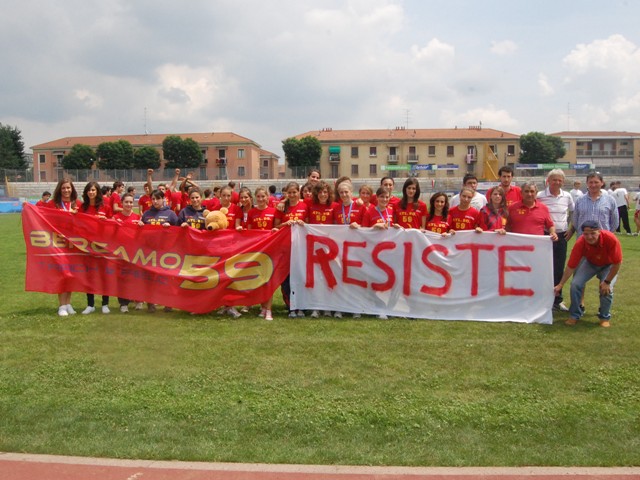 Il bilancio del 2011 non può poi prescindere dai successi e dalle soddisfazioni che piovono numerose grazie agli atleti cresciuti nelle file giallorosse e ora in forza a società militari, che complessivamente regalano all’Atletica Bergamo ’59 la bellezza di 5 titoli e 5 podi ai Tricolori assoluti, oltre a undici maglie azzurre. La parte del leone la fa Marta Milani, che infila una doppietta sui 400 dominando sia in sala sia all’aperto, ma conquista anche un brillantissimo sesto posto agli Europei indoor e si difende con i denti ai Mondiali di Daegu, dove si arena in semifinale ma dopo aver portato il personale sul giro a 51”86. La maglia azzurra per Daegu non sfugge nemmeno all’altra portacolori dell’Esercito, Raffaella Lamera, che nel salto in alto imita la Milani vincendo entrambi i titoli italiani, ma poi sul palcoscenico iridato non supera lo scoglio della qualificazione. Meno fortuna ha invece il poliziotto Marco Vistalli, nonostante il limpido successo agli Assoluti e il non meno importante terzo posto al campionato europeo per nazioni: qualche infortunio di troppo proprio sul più bello nega all’allievo di Alberto Barbera la soddisfazione della prima partecipazione ai Mondiali, perché sfugge l’assalto al minimo nella gara individuale e anche in staffetta, gara quest’ultima, che in caso di promozione per l’appuntamento iridato, avrebbe visto in lizza probabilmente anche l’altro quattrocentista “made in Atletica Bergamo”, vale a dire Isalbet Juarez, anche lui in forza alle Fiamme Oro, vicecampione italiano sia indoor sia all’aperto. Ma la delusione più cocente tocca al carabiniere Matteo Giupponi, che inizia la stagione alla grande, vincendo l’incontro internazionale di Podebrady e centrando il minimo per i Mondiali, prima di essere escluso per scelta tecnica dalla squadra per Daegu. Una citazione infine anche per il saltatore in alto Andrea Bettinelli, che al rientro dopo il 2010 buttato per l’operazione a una caviglia torna a riassaporare misure importanti, e per l’altro marciatore Daniele Paris, che si porta a casa un’altra medaglia di bronzo, ai Tricolori della 20 km, e torna a indossare la maglia azzurra.