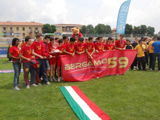 L’annata numero 53 della storia giallorossa va agli archivi con un altro bottino di risultati di tutto rispetto, che si sintetizza innanzitutto con i piazzamenti di prestigio nei vari campionati di società su pista, simbolo della forza del collettivo. Su tutti spicca il 6° posto della squadra maschile assoluta nella finale di serie A Gruppo Oro, che per il quarto anno consecutivo vede i giallorossi lottare – e difendersi con onore - con i migliori 11 team italiani, nonostante una squadra fatta praticamente tutta in casa, senza ricorrere ad acquisti esterni. Le donne, invece, trionfano nella finale Argento, centrando quindi il 13° posto nazionale e riconquistando subito la massima serie dopo la retrocessione del 2010. Finale argento vinta anche dalla squadra delle under 23 femminile, che fa bella accoppiata con il settimo posto di quella maschile, mentre allieve e allievi, sempre in serie A, chiudono quarte e ottavi rispettivamente. A tutto ciò vanno poi aggiunti il secondo posto nella Supercoppa maschile, il terzo gradino del podio nella classifica combinata maschile di corsa campestre, il secondo nella classifica juniores maschile indoor, il terzo in quella allieve. Ma, più di tutti, brillano i due scudetti che finiscono sulle maglie degli allievi nei campionati di specialità: salti maschili e lanci femminili. Tricolori che trovano una bella accoppiata con il poker di titoli confezionato dall’allieva Sabrina Maggioni nei 400 indoor, dagli juniores Hassane Fofana nei 110 hs, Federica Curiazzi nella marcia indoor e gli staffettisti della 4x400 Diego Daminelli, Mohamed Traore, Pierangelo Redondi e Michel Verzeri. E’ proprio Fofana, nel bene e nel male, il grande protagonista della stagione. Il diciannovenne originario della Costa d’Avorio, fresco di cittadinanza italiana, comincia con l’argento ai campionati italiani juniores indoor sui 60 hs, che gli regala la prima maglia azzurra ad Amburgo nel triangolare under 20 Italia-Francia-Germania. Poi esplode nella stagione all’aperto, sui 110, battendo a due riprese il primato italiano di categoria: 13”87 il 4 giugno a Firenze e 13”76 il 18 giugno ai Tricolori di Bressanone. Brilla anche agli Assoluti, dove è 7° nella finale con le barriere più alte, confermando i suoi grandi progressi anche al cospetto di atleti meno giovani e più esperti. A questo punto la sua chiamata per gli Europei Juniores è data ovviamente per scontata, supportata da un benaugurante 8° posto nella graduatoria continentale, ma a pochi giorni dalla partenza per Tallinn, ecco la doccia fredda: per un assurdo, inqualificabile errore burocratico della Fidal (il certificato che attesta il suo cambo di nazionalità non viene spedito nei tempi utili alla Iaaf) l’allievo di Alberto Barbera non sale sull’aereo per l’Estonia e versa lacrime amare. A nulla servono le proteste dell’Atletica Bergamo ’59, che si consola parzialmente con la convocazione di Federica Curiazzi, ormai abbonata ai gettoni azzurri, visto che ne aggiunge altri quattro alla sua già ricca collezione: un po’ frenata dagli impegni scolastici per preparare gli esami di maturità, la marciatrice cresciuta da Ruggero Sala sui 10 km deve accontentarsi di un 9° posto lusinghiero ma che non rispetta il suo reale potenziale. In nazionale, sempre a livello juniores, entra anche Chiara Rota, in pedana nel triangolare indoor con Francia e Germania: la ragazza seguita da Pierangelo Maroni si mette al collo anche la medaglia di bronzo ai Tricolori juniores all’aperto. Vittorie comprese, i podi tricolori di categoria alla fine saranno 13. Tra le promesse vi riescono nella rassegna indoor Isabella Cornelli, argento sugli 800, e la sorpresa Matteo Crotti, bronzo sui 400, mentre a livello juniores la stessa Curiazzi è argento sui 5000, così come il quartetto della 4x1 giro indoor composto da Luca Belotti, Hassane Fofana, Marco Chitò e Alessandro Lanfranchi. Tra gli allievi, invece, l’argento finisce al collo delle ragazze della 4x400 Giulia Pasqualini, Anastasia Viganò, Beatrice Cisana e Sabrina Maggioni, già bronzo nella gara individuale sul giro, bronzo anche per l’ostacolista Giulio De Marchi. I campionati italiani individuali sono tuttavia una vetrina per tanti altri. E purtroppo ci riservano una sfilza di “medaglie di legno”. Il più sfortunato di tutti è Michele Oberti, che agli Assoluti indoor è 4° negli 800 a un centesimo dal podio. Nella rassegna all’aperto non è altrettanto in palla e finisce 8°, ma l’atleta di Saro Naso chiude anche nel 2011 ai vertici della specialità: con 1’49”18 è 6° nella lista italiana stagionale. Sempre agli Assoluti indoor si ritagliano spazio altri due mezzofondisti: Luigi Ferraris è 7° nei 1500, Isabella Cornelli 8a negli 800.